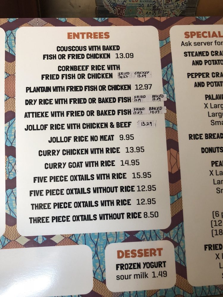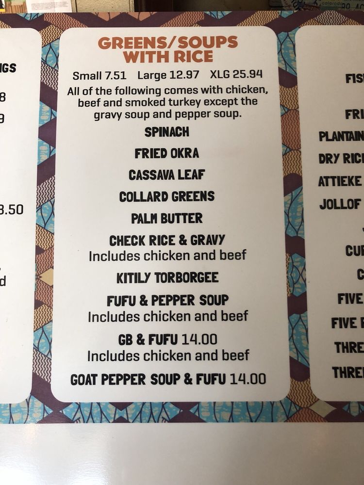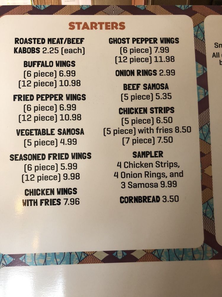 Glamaur African Kitchen Menu